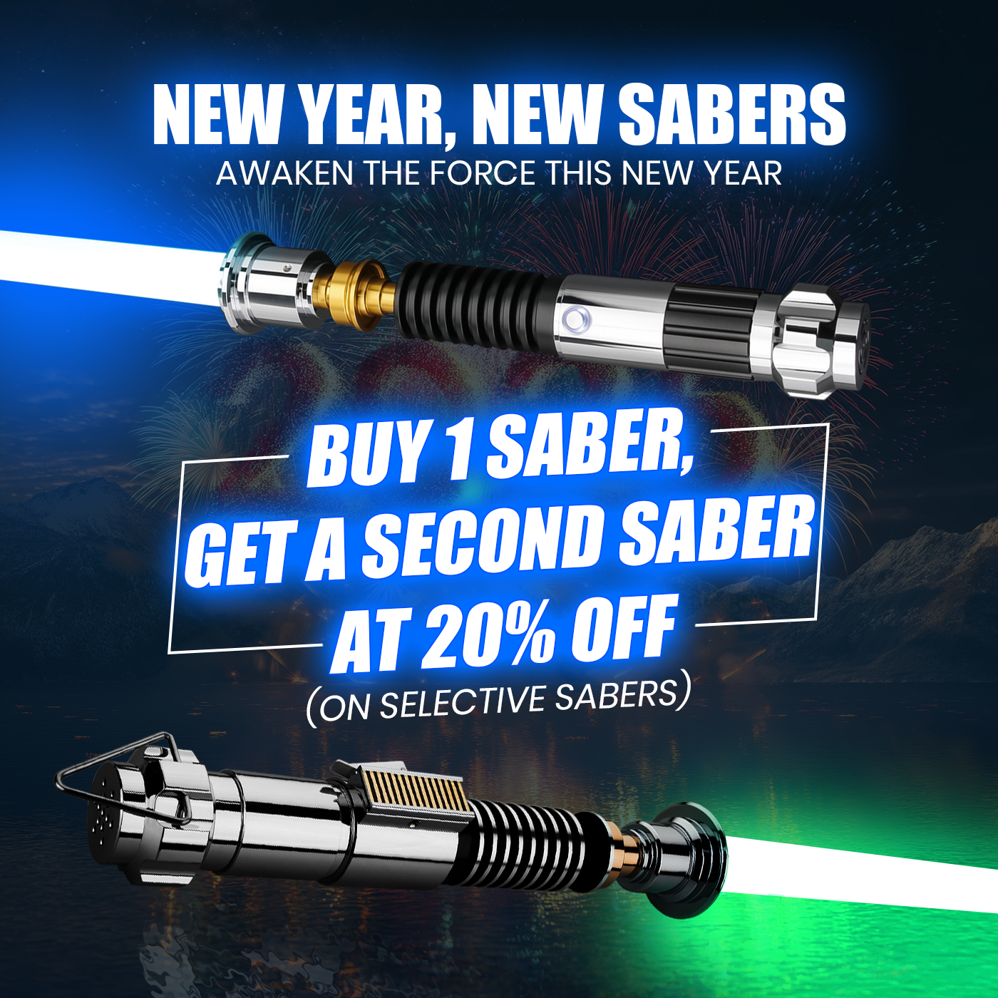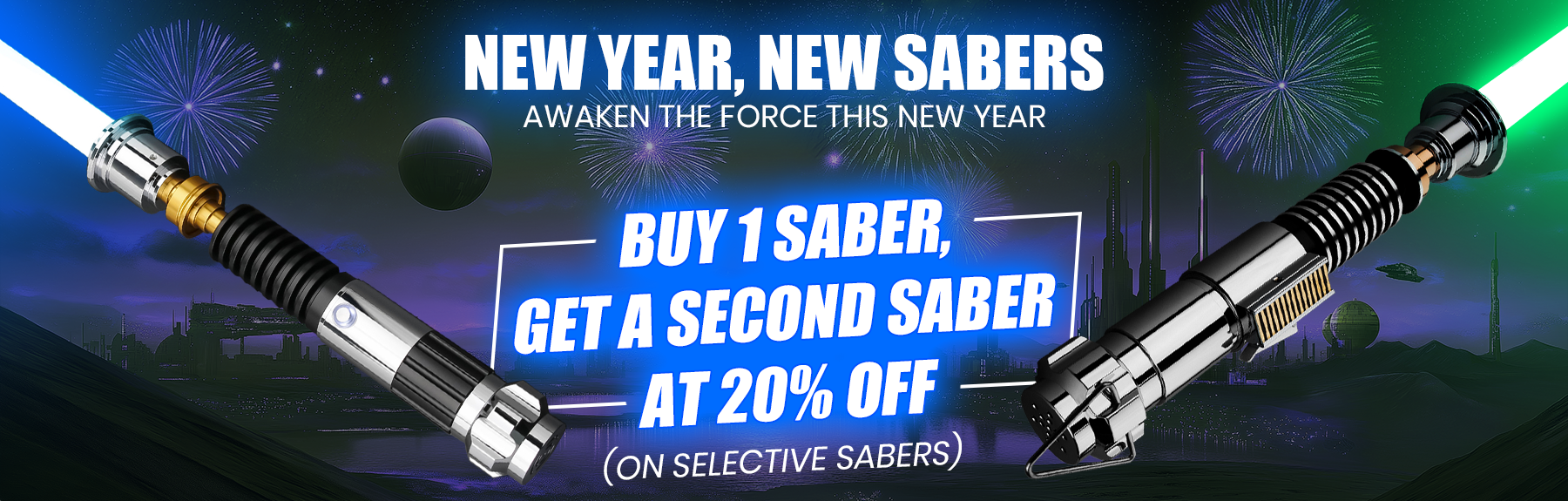 Elevate your lightsaber collection with NEO Sabers exclusive New Year offer: Buy 1 Saber and get the second lightsaber at 20% off! Whether you're a dedicated duelist, a passionate collector, or someone who is looking to share the thrill with a fellow galaxy far, far away fan, this deal is just perfect for upgrading your arsenal. This offer is available on our selective range of lightsabers. With this limited-time offer, you can add another high-quality saber to your collection while saving big at the same time. Don’t miss this amazing chance to gear up for epic battles or display-worthy additions.