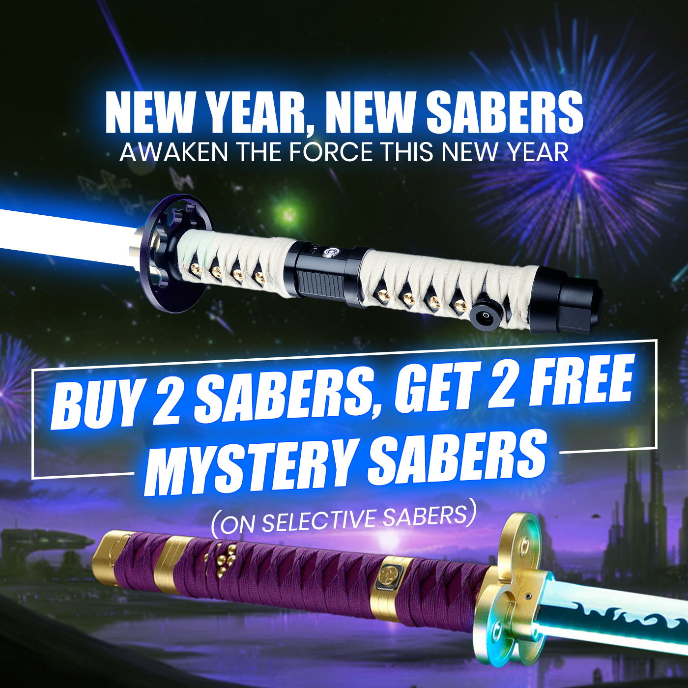 Double the excitement this Starwars Day with NEO Sabers unbeatable offer: Buy 2 Sabers and get 2 Mystery Sabers completely for FREE! Perfect for sparring duels, gifting, or growing your collection, this deal is available on selective sabers. The Mystery Sabers are going to bring an extra layer of thrill to your purchase, by adding surprises to your journey in the Force. Don’t miss this chance to light up four lightsabers for the price of two and take your next adventure of the galaxy far, far away on another level. Act now as the Force is calling!